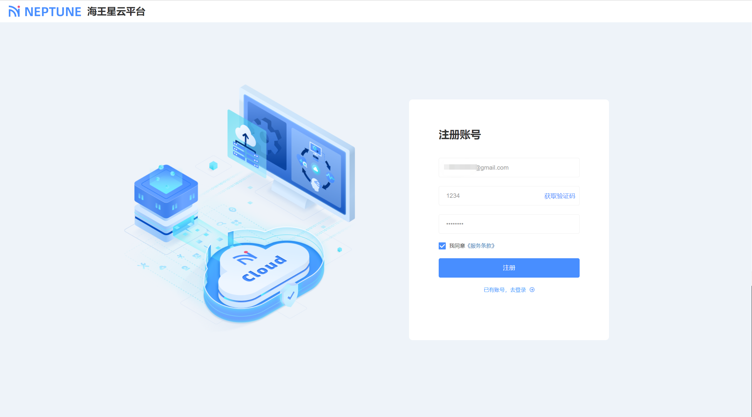注册完成后,页面跳转到登录界面。您可以使用您的账号密码进行登录。