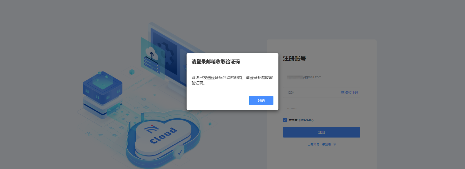 点击获取验证码,系统将发送验证码到你注册的账号的邮箱地址或手机号中。